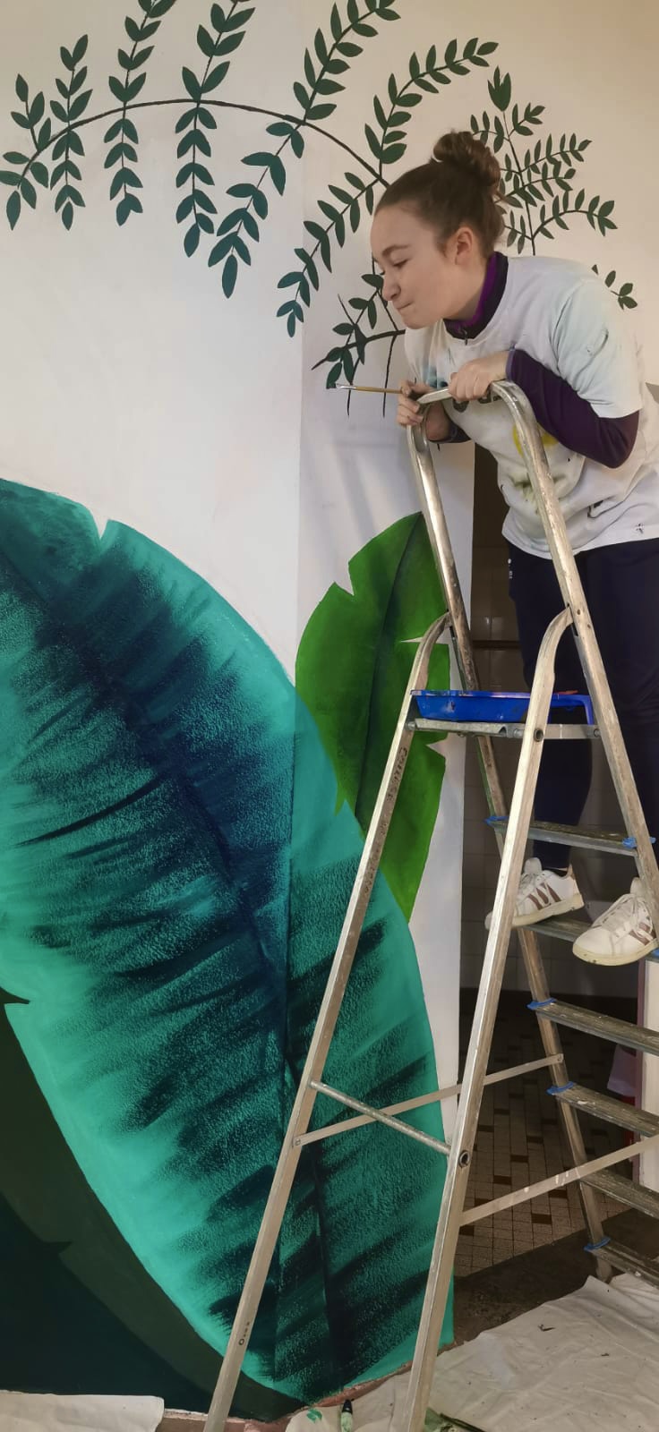 Nous préparons tout le matériel et partons les accompagner pour deux jours de peinture. Le but ici n’est pas de peindre à leur place ou reprendre leurs idées mais bien de leur donner les clés techniques, les astuces, pour matérialiser et mener à bien leur projet.